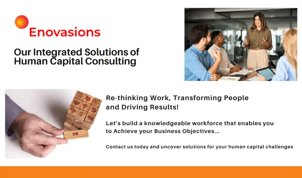At Enovasions Human Capital, we put people at the heart of everything and adopting technology enhances our consulting services. Whether you are a growing business or a multinational enterprise, our experts are here to help you navigate the evolving workforce landscape.