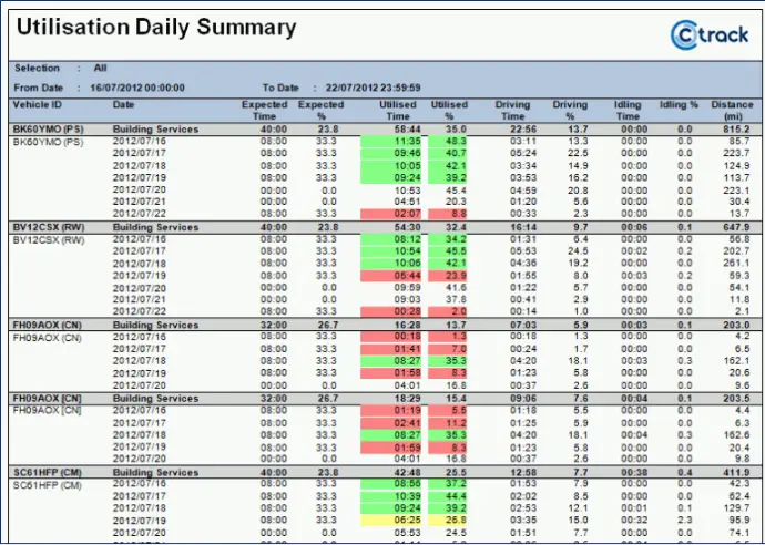 • Historical data of routes, site visits, vehicle speeds, idling, driver behaviour and much more